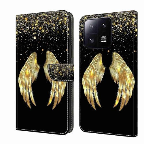 Para Xiaomi 13 Pro Crystal 3D Funda Protectora de Cuero para Teléfono a Prueba de Golpes (Alas Doradas)