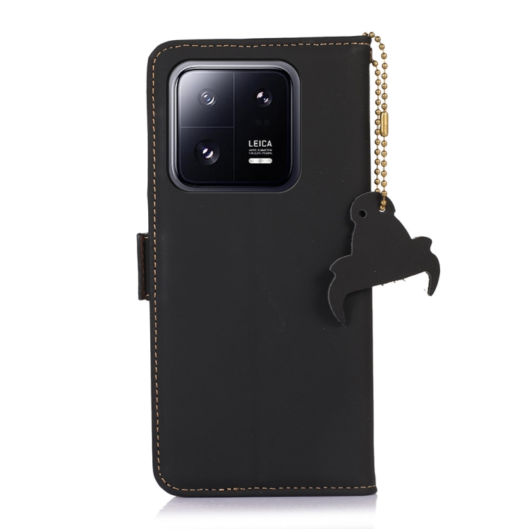 Para Xiaomi 13 Pro Estuche de Teléfono de Cuero Rfid Magnético de Cuero Genuino (Negro)