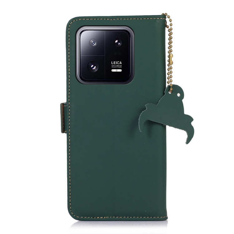 Para Xiaomi 13 Pro Estuche de Teléfono de Cuero Rfid Magnético de Cuero Genuino (Verde)