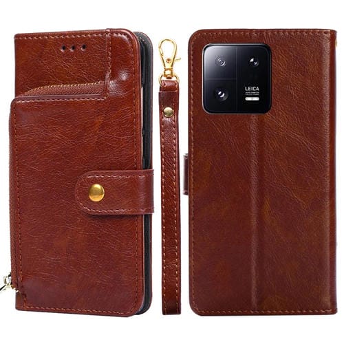 Para Xiaomi 13 Pro Funda de Cuero con Cremallera para Teléfono (Marrón)