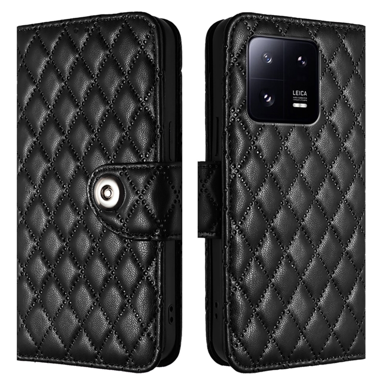 Para Xiaomi 13 Pro Funda de Teléfono de Cuero con Tapa con Textura Rombal y Cordón (Negro)