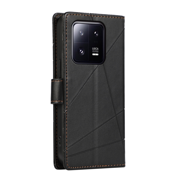Para Xiaomi 13 Pro Pu Funda de Teléfono con Línea En Relieve con Textura de Cuero Genuino (Negro)