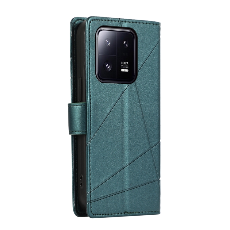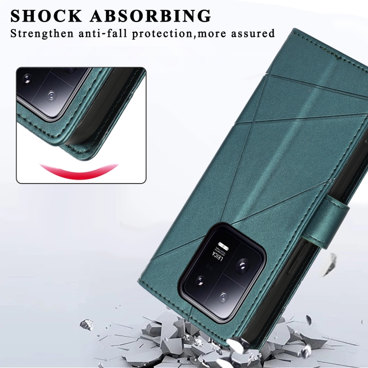 Para Xiaomi 13 Pro Pu Funda de Teléfono con Línea En Relieve con Textura de Cuero Genuino (Verde)