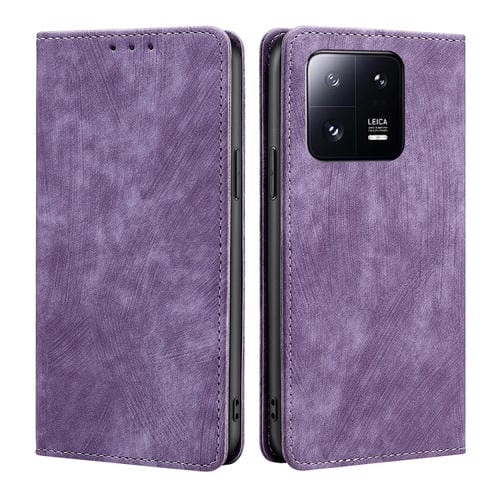 Para Xiaomi 13 Pro Rfid Funda de Teléfono de Cuero Magnético con Cepillo Antirrobo (Púrpura)