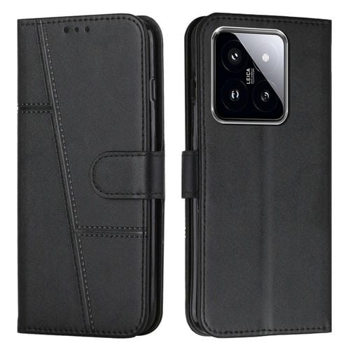 Para Xiaomi 14 Funda De Teléfono De Cuero Con Hebilla Y Textura De Becerro Con Costura (Negro)