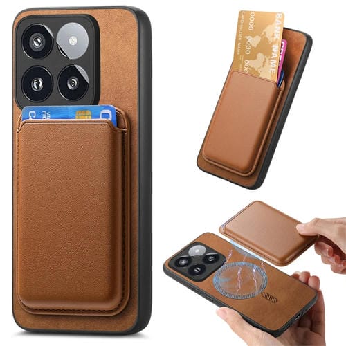Para Xiaomi 14 Pro 5G Retro Magsafe Card Bag Pu Funda Para Teléfono Con Contraportada (Marrón)