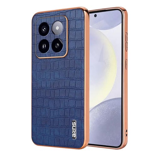 Para Xiaomi 14 Pro Azns Marco Galvanizado Textura De Cocodrilo Funda Para Teléfono De Cobertura Total (Azul)