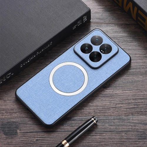 Para Xiaomi 14 Pro Cd Funda Para Teléfono Pu Con Textura De Tela Magnética (Azul)
