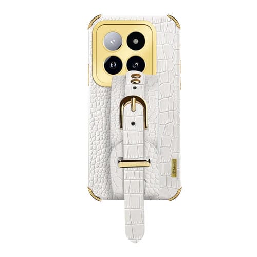 Para Xiaomi 14 Pro Correa De Muñeca Galvanizada Funda Trasera De Cuero De Cocodrilo (Blanco)