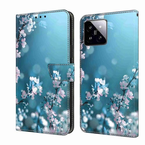 Para Xiaomi 14 Pro Crystal 3D Funda Protectora De Cuero Para Teléfono A Prueba De Golpes (Flor De Ciruelo)