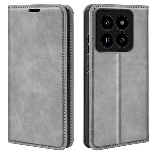 Para Xiaomi 14 Pro Funda De Teléfono De Cuero Con Succión Magnética De Piel Retro (Gris)