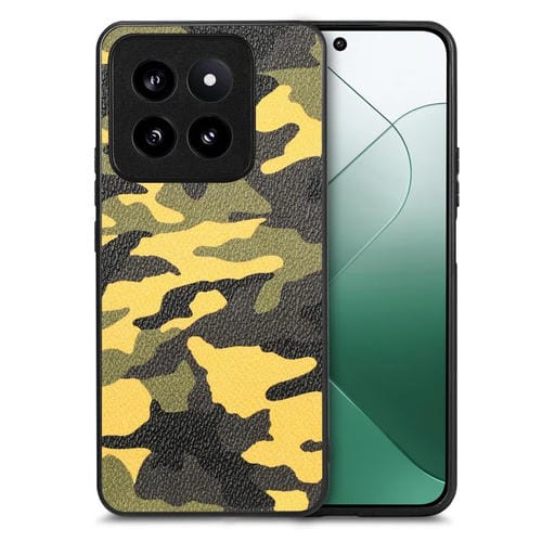 Para Xiaomi 14 Pro Funda Trasera De Cuero De Camuflaje Retro (Amarillo)