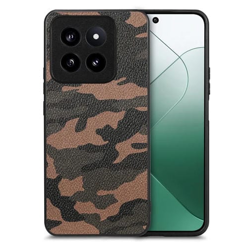 Para Xiaomi 14 Pro Funda Trasera De Cuero De Camuflaje Retro (Marrón)