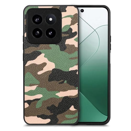 Para Xiaomi 14 Pro Funda Trasera De Cuero De Camuflaje Retro (Verde)