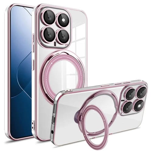 Para Xiaomi 14 Pro Galvanoplastia Magsafe Soporte De Rotación De 360 Grados Estuche Para Teléfono A Prueba De Golpes (Rosa)