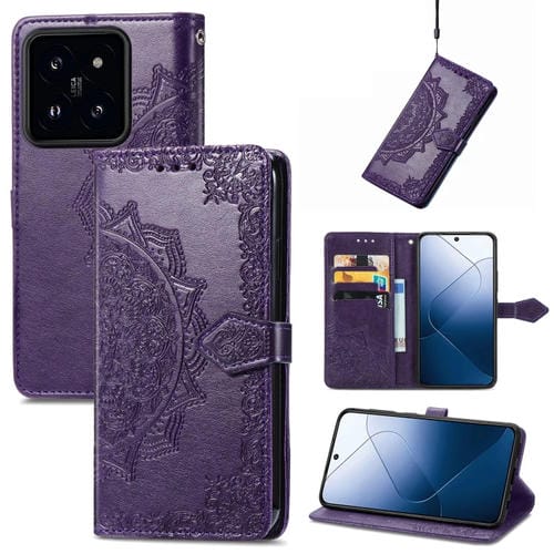 Para Xiaomi 14 Pro Mandala Flower Funda De Cuero Para Teléfono En Relieve (Púrpura)