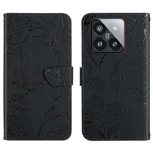 Para Xiaomi 14 Pro Skin Feel Butterfly Funda De Cuero Con Tapa En Relieve (Negro)