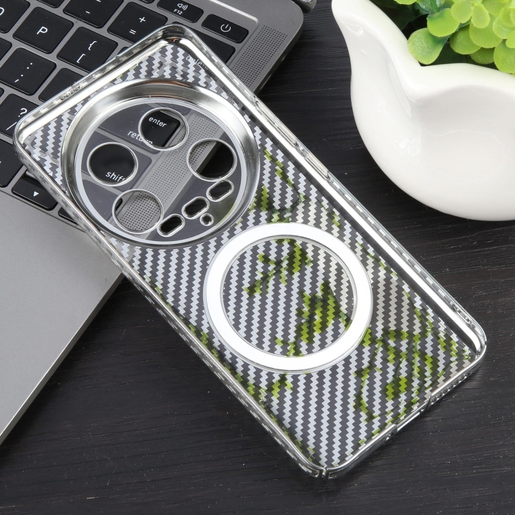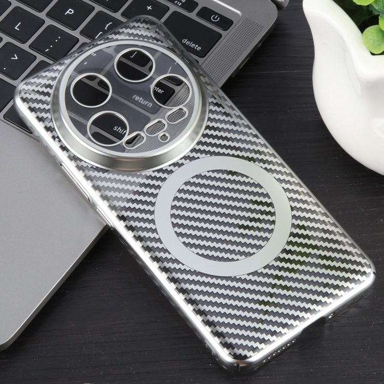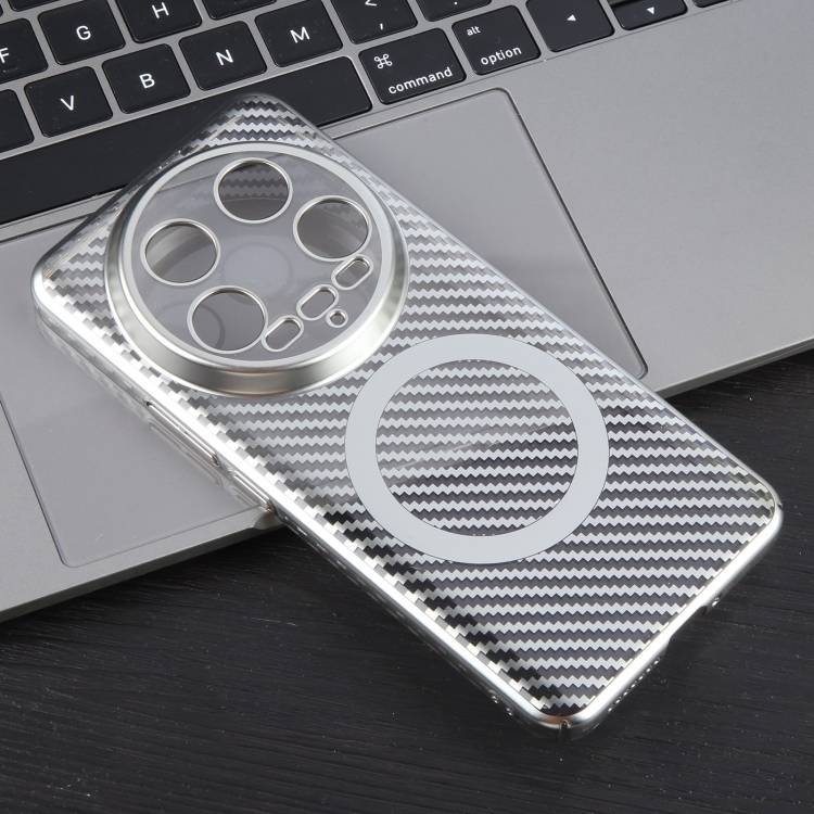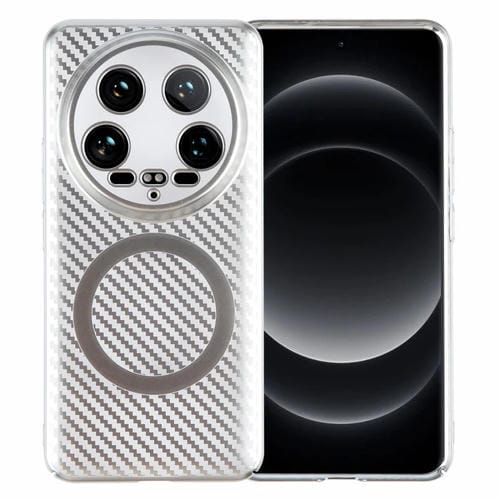 Para Xiaomi 14 Ultra 6D Caja De Teléfono Para Pc Magsafe Transparente Con Fibra De Carbono Plateada (Starlight Silver)