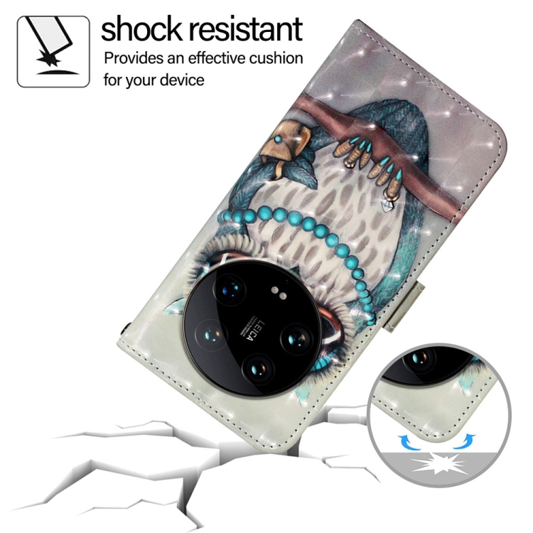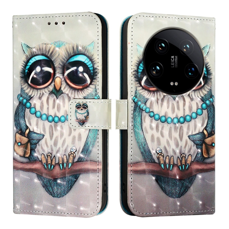 Para Xiaomi 14 Ultra Funda De Cuero Con Tapa Horizontal Con Pintura 3D (Búho Gris)