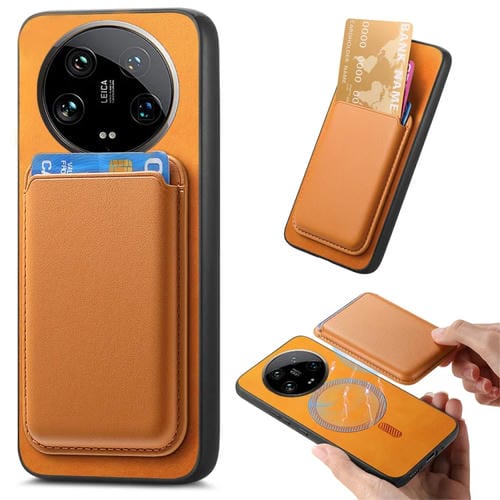Para Xiaomi 14 Ultra Retro Magsafe Card Bag Pu Funda Para Teléfono Con Contraportada (Amarillo)