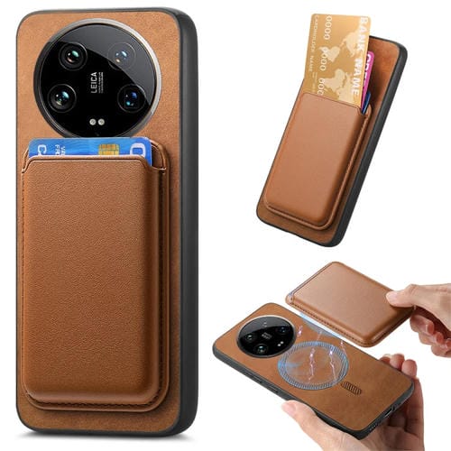 Para Xiaomi 14 Ultra Retro Magsafe Card Bag Pu Funda Para Teléfono Con Contraportada (Marrón)
