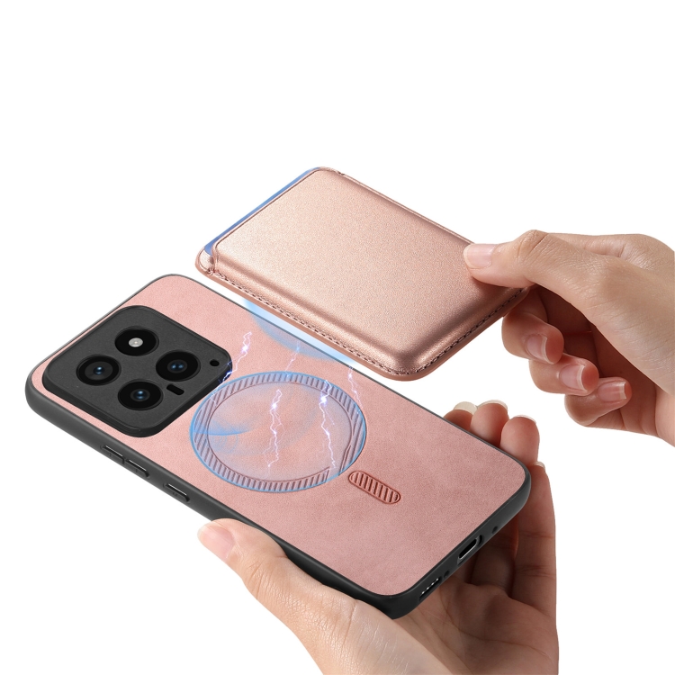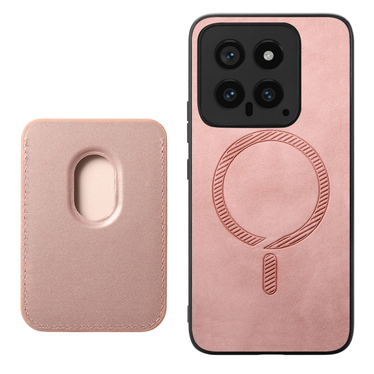 Para Xiaomi 14 Ultra Retro Magsafe Card Bag Pu Funda Para Teléfono Con Contraportada (Rosa)