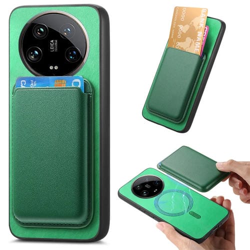 Para Xiaomi 14 Ultra Retro Magsafe Card Bag Pu Funda Para Teléfono Con Contraportada (Verde)