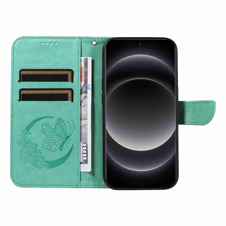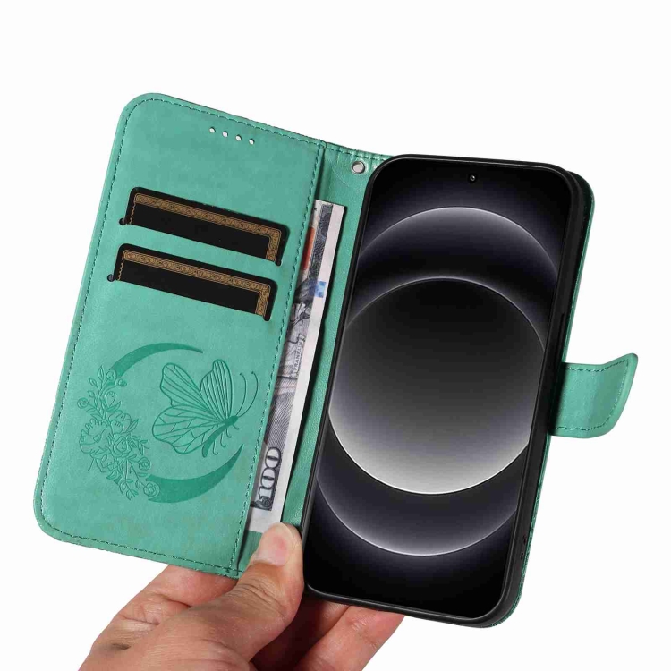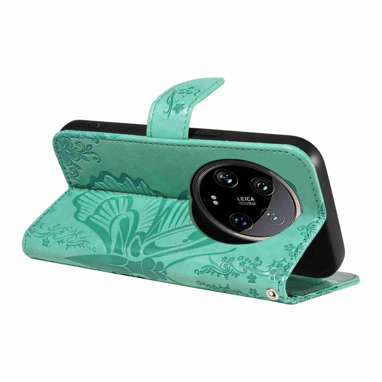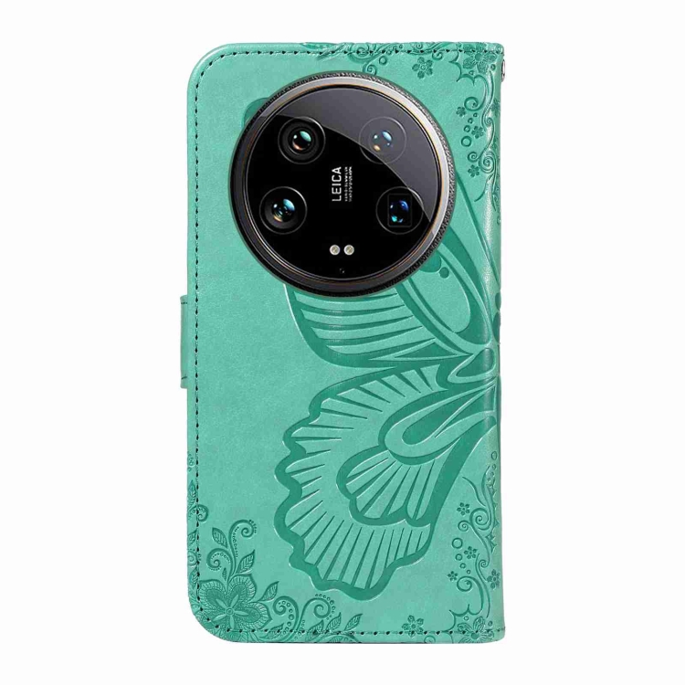 Para Xiaomi 14 Ultra Swallowtail Butterfly Funda De Cuero Para Teléfono En Relieve (Verde)