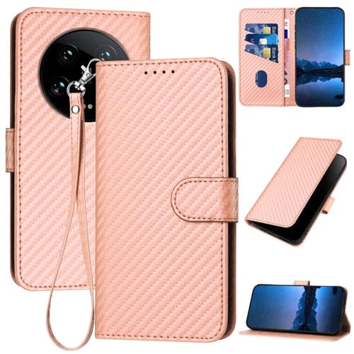 Para Xiaomi 14 Ultra Yx0070 Funda De Cuero Con Hebilla De Fibra De Carbono Y Cordón (Rosa)
