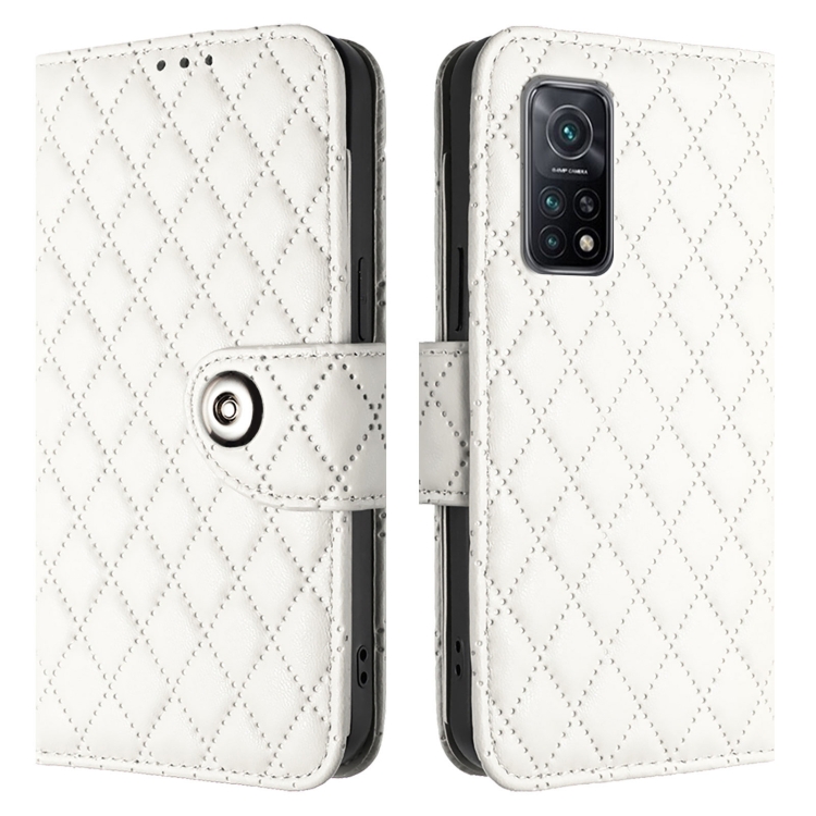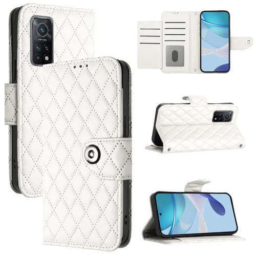 Para Xiaomi Mi 10T / 10T Pro 5G Funda de Cuero con Tapa con Textura Romboidal y Cordón (Blanco)