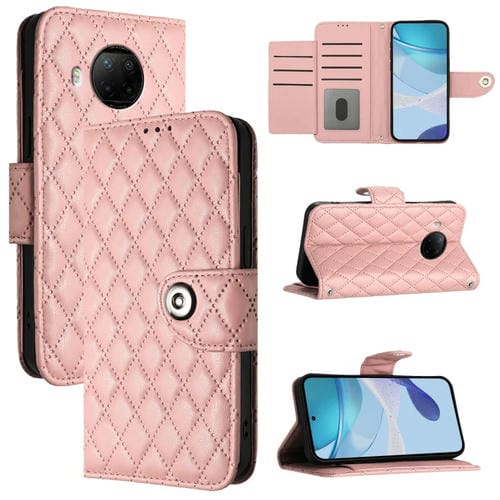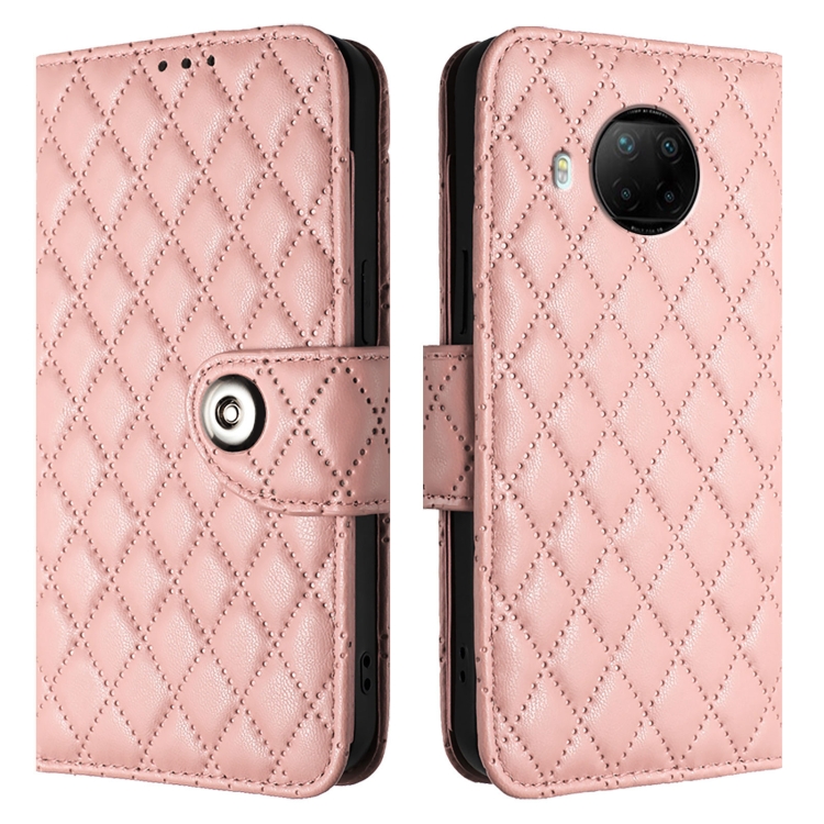 Para Xiaomi Mi 10T Lite 5G Funda para Teléfono con Tapa de Cuero con Textura Rómbica y Cordón (Rosa Coral)
