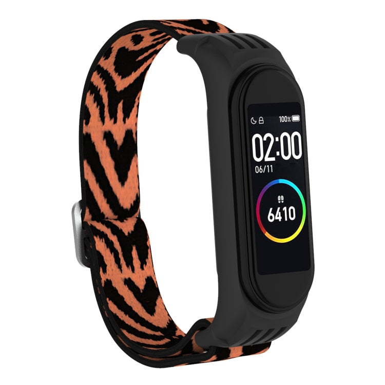Para Xiaomi Mi Band 3/4/5 Band de reloj elástica de hebilla de 8 formas (leopardo de flores)