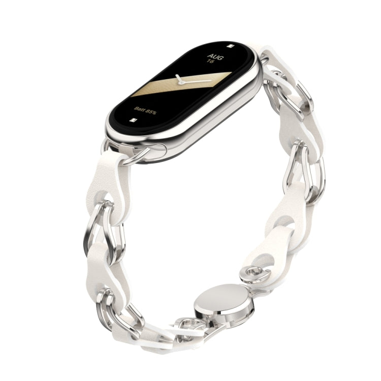 Para Xiaomi Mi Band 8 Cadena de cuero hueca Correa de reloj con hebilla magnética (Blanco)