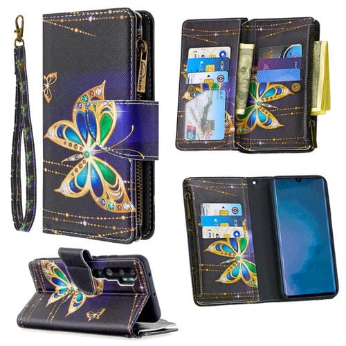 Para Xiaomi Mi Cc9 Pro / Note 10 Patrón de Dibujo de Colores Cremallera Funda de Cuero con Tapa Horizontal con Soporte y Ranuras para Tarjetas y Billetera (Mariposa Grande)