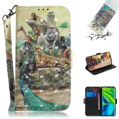 Para Xiaomi Mi Note 10 Funda de Cuero con Tapa Horizontal de Pintura 3D con Soporte y Ranura para Tarjeta y Billetera y Cordón (Zoo)