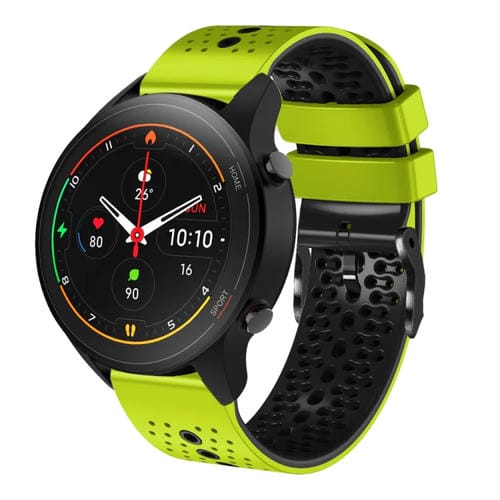 Banda de Reloj de Silicona para Xiaomi Mi Watch S1 Pro 22mm Dos Colores Perforada (Lima + Negro)