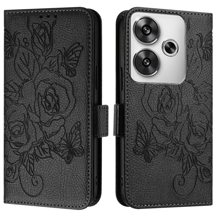 Para Xiaomi Poco F6 5G Funda de Teléfono de Cuero Antirrobo Rfid con Relieve Rosa (Negro)