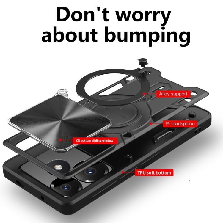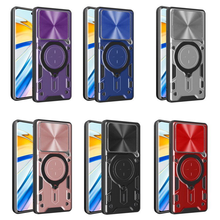 Para Xiaomi Poco F6 Cd Texture Sliding Camshield Funda para Teléfono con Soporte Magnético (Plata)