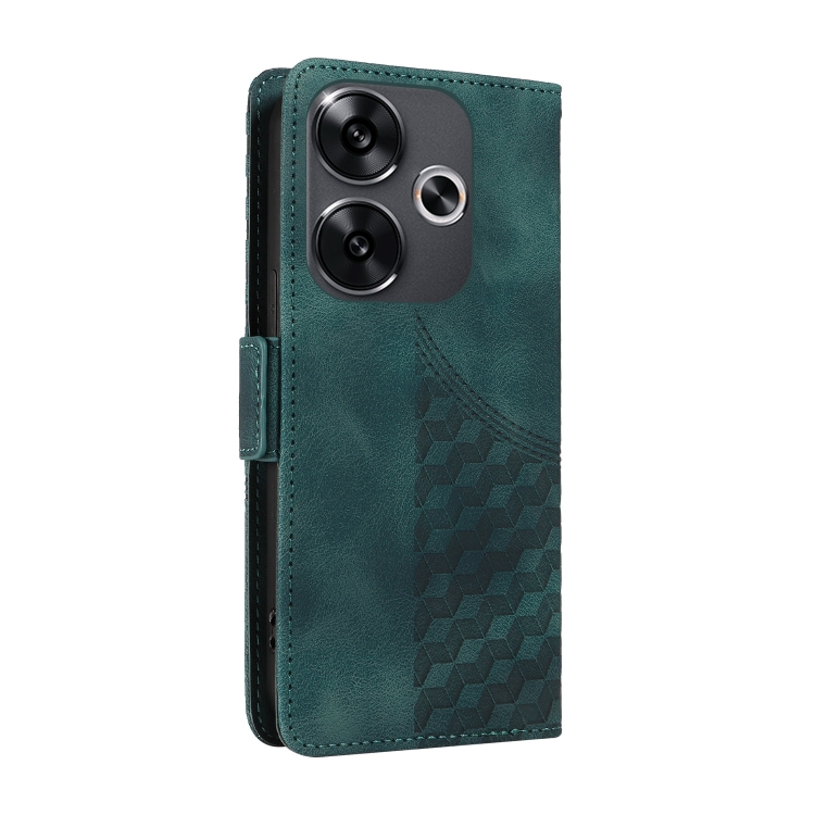 Para Xiaomi Poco F6 Funda para Teléfono de Cuero Estrellado con Rombos En Relieve (Verde)