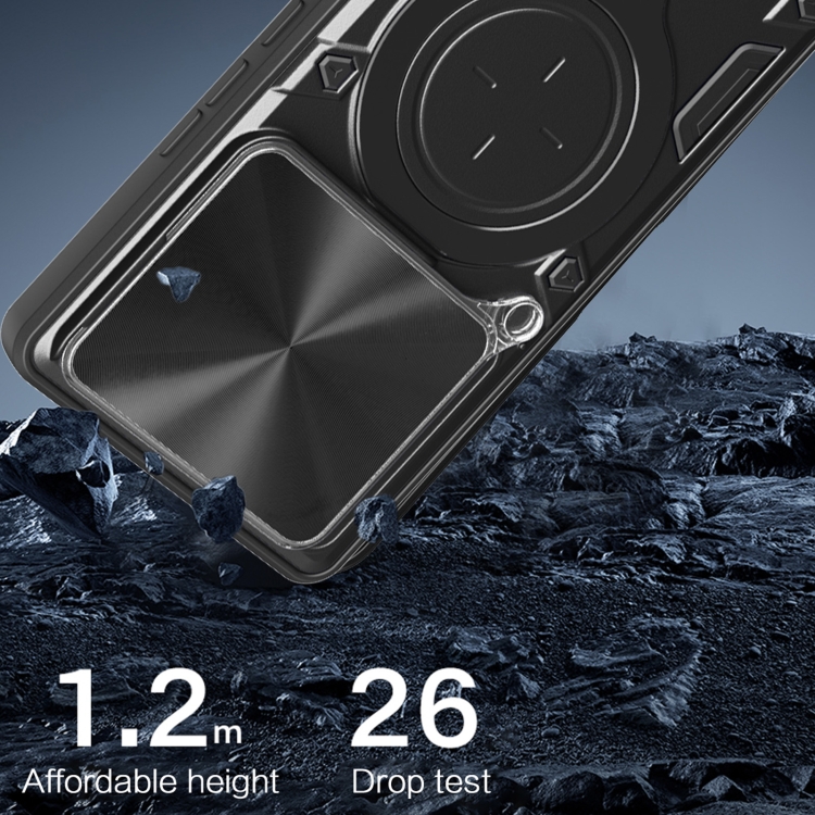 Para Xiaomi Poco F6 Pro Cd Texture Sliding Camshield Funda para Teléfono con Soporte Magnético (Negro)