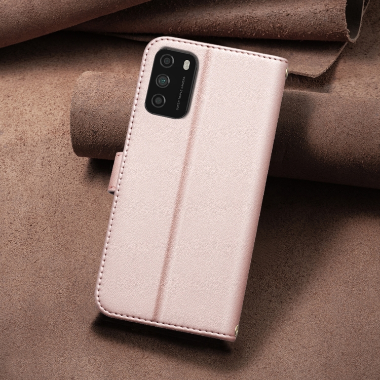 Para Xiaomi Poco M3 Pro / Redmi Note 10 5G Funda de Cuero para Teléfono con Textura Cuadrada (Oro Rosa)