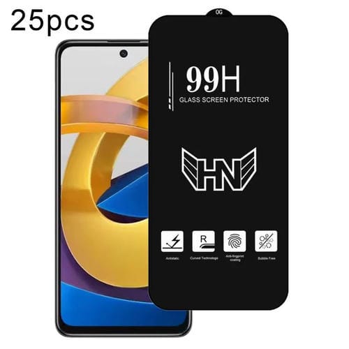 Para Xiaomi Poco M4 Pro 5G 25 Piezas de Película de Vidrio Templado de Pantalla Completa de Arco Grande de Aluminio Alto