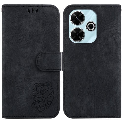 Para Xiaomi Poco M6 4G Little Tiger Funda de Cuero para Teléfono En Relieve (Negro)