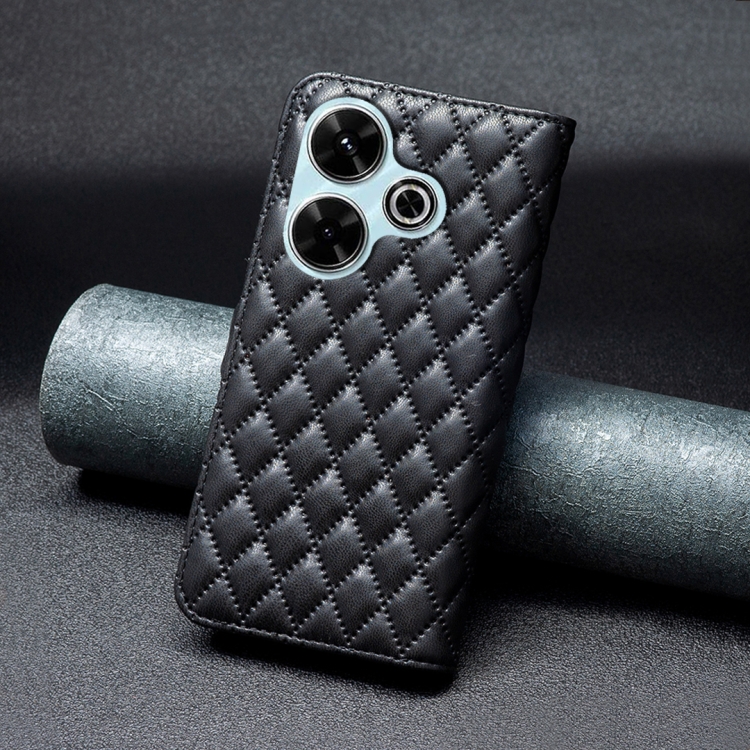 Para Xiaomi Poco M6 4G / Redmi 13 4G Diamond Lattice Wallet Funda de Cuero con Tapa para Teléfono (Negro)