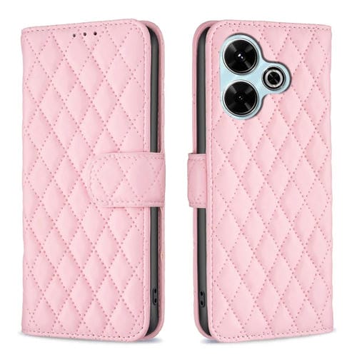 Para Xiaomi Poco M6 4G / Redmi 13 4G Diamond Lattice Wallet Funda de Cuero con Tapa para Teléfono (Rosa)