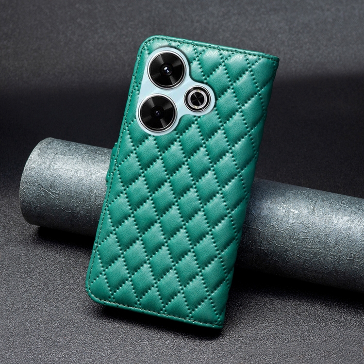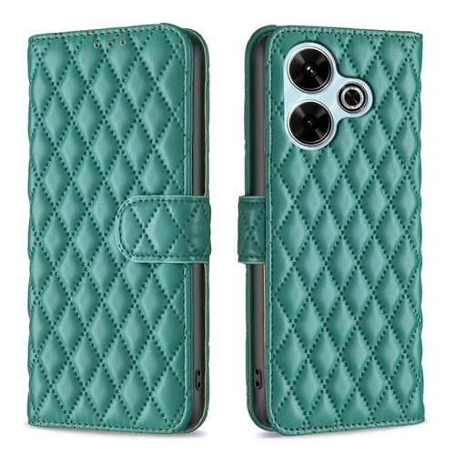 Para Xiaomi Poco M6 4G / Redmi 13 4G Diamond Lattice Wallet Funda de Cuero con Tapa para Teléfono (Verde)