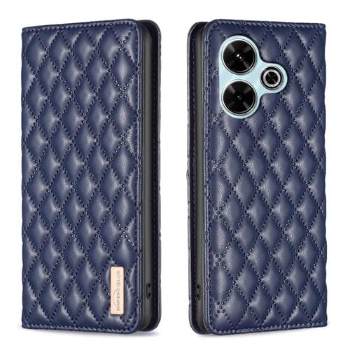 Para Xiaomi Poco M6 4G / Redmi 13 4G Funda para Teléfono con Tapa de Cuero Magnético Diamond Lattice (Azul)