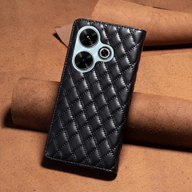 Para Xiaomi Poco M6 4G / Redmi 13 4G Funda para Teléfono con Tapa de Cuero Magnético Diamond Lattice (Negro)
