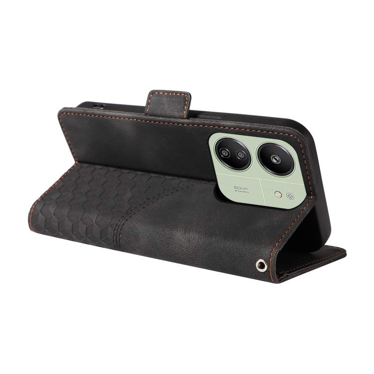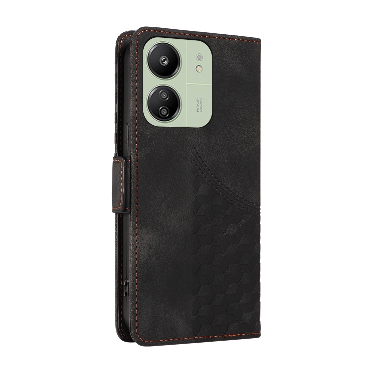 Para Xiaomi Poco M6 / C65 Funda para Teléfono de Cuero Estrellado con Rombos En Relieve (Negro)