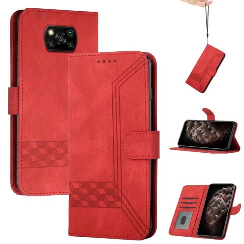 Para Xiaomi Poco X3 Nfc Cúbica Cúbica Siente la Funda del Teléfono de Cuero con Flip (Rojo)